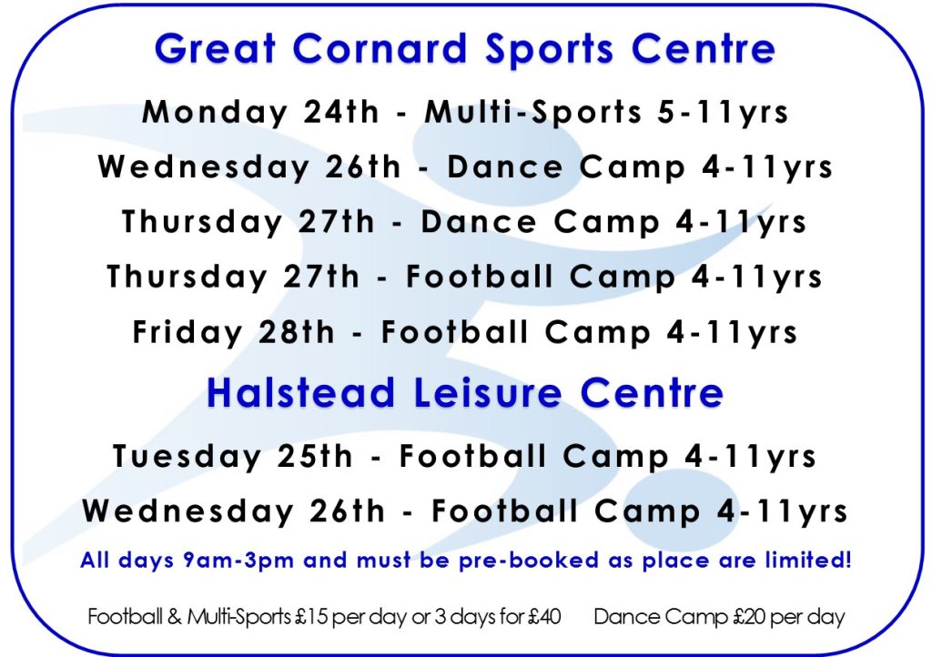 Latest News Read more May Football Camps 9 May 2017 We have May Football Camps running at Great Cornard Sports Centre, Sudbury Sports Centre and... Continue reading